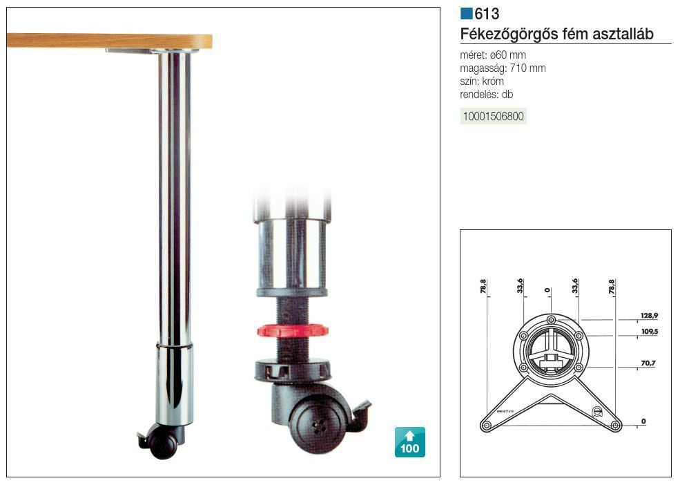ASZTALLÁB 613 FÉKEZŐGÖRGŐS 655mm ÁTM: 60mm KRÓM 10001506800