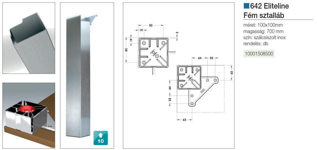 ASZTALLÁB 642 700 SZÁLCSISZOLT NIKKEL 10001508500