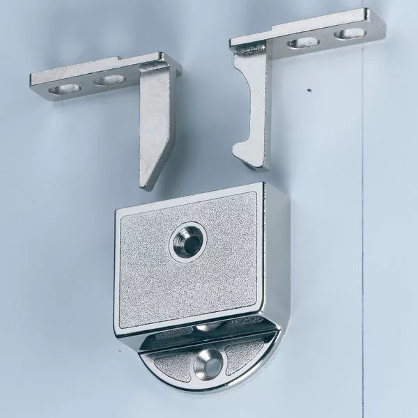 Az automatikus ajtó reteszének burkolata a felső panel közepe alatt van csavarral rögzítve, mindkét ajtó tetejére mindkét reteszhorog fel van csavarozva