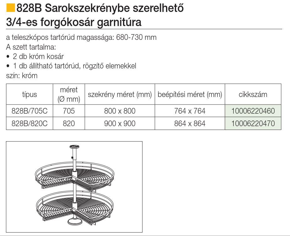 BELSŐ FÉMRÁCS 828B/820 SAROKSZEKRÉNYBE SZERELHETŐ 3/4-ES FORGÓTÁNYÉR 820mm KRÓM 10006220470