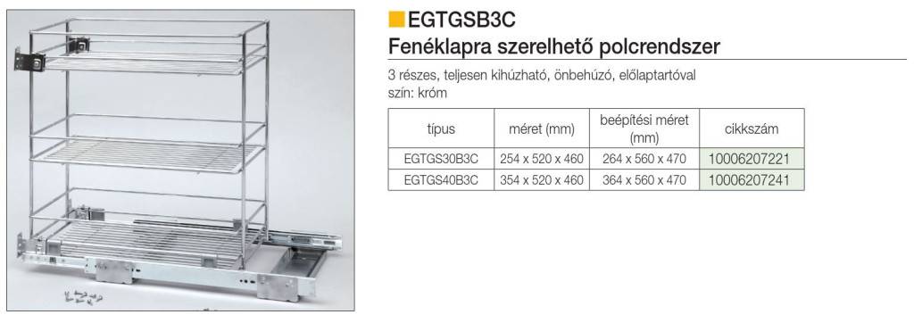 BELSŐ FÉMRÁCS EGTGS30B3C 3RÉSZES KIHÚZHATÓ POLC . KRÓM-SZÜRKE 10006207221