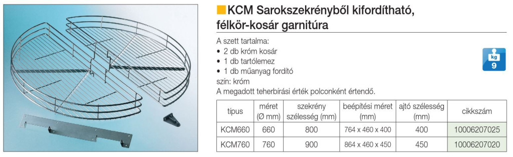 BELSŐ FÉMRÁCS KCM760 FÉLKÖR KOSÁR GARNITÚRA 760×127×390 mm KRÓM 10006207020