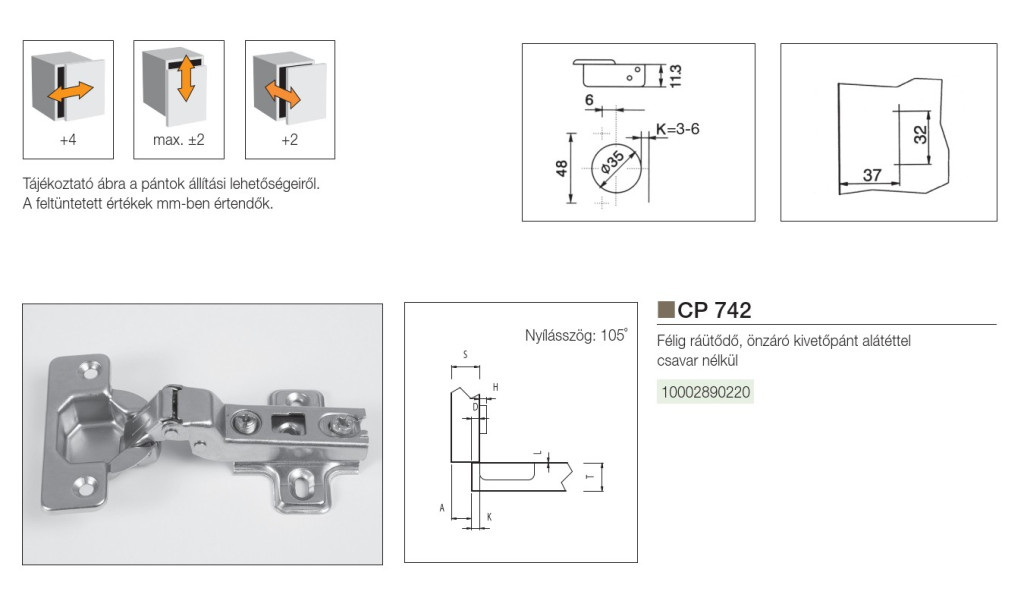 BÚTORPÁNT CP 742 FÉLIG RÁÜTŐDŐ PÁNT+ALÁTÉT NORMÁL NIKKEL 10002890220