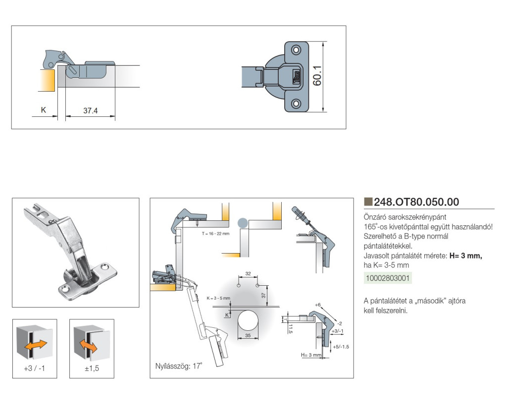 BÚTORPÁNT TITUS 248.OT80.05 SAROKSZEKRÉNYPÁNT NORMÁL NIKKEL 10002803001