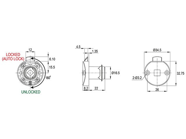 CL BÚTORZÁR 735-CL2 RUGÓS FIÓKZÁR 33x35mm KÖR NIKKEL 10003230600