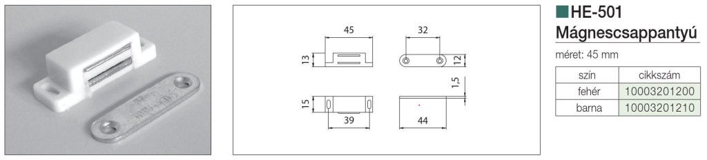 EGYÉB BÚTORZÁR HE-501 MÁGNESCSAPPANTYÚ Furatt: 39mm BARNA 10003201210