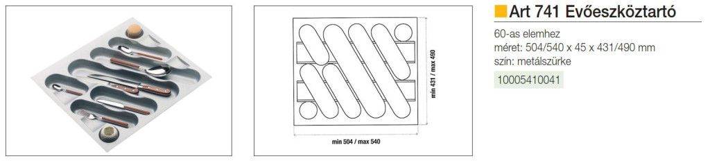 EVŐESZKÖZTARTÓ ART 741, 60 504/540 x 431/490 mm METÁL SZÜRKE 10005410041