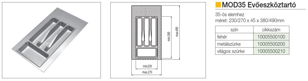 EVŐESZKÖZTARTÓ MOD 35 490×270 mm METÁL SZÜRKE 10005500200