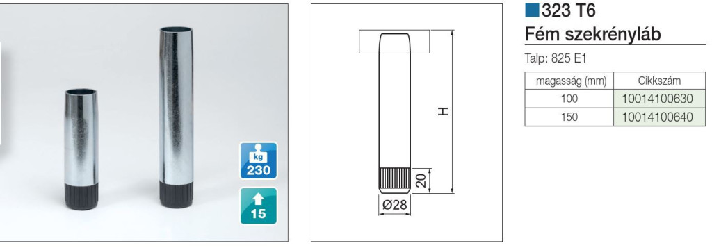 FÉM SZEKRÉNYLÁB 323/150 T6 LÁB TALP NÉLKÜL 150 mm HORGANYZOTT 10014100640