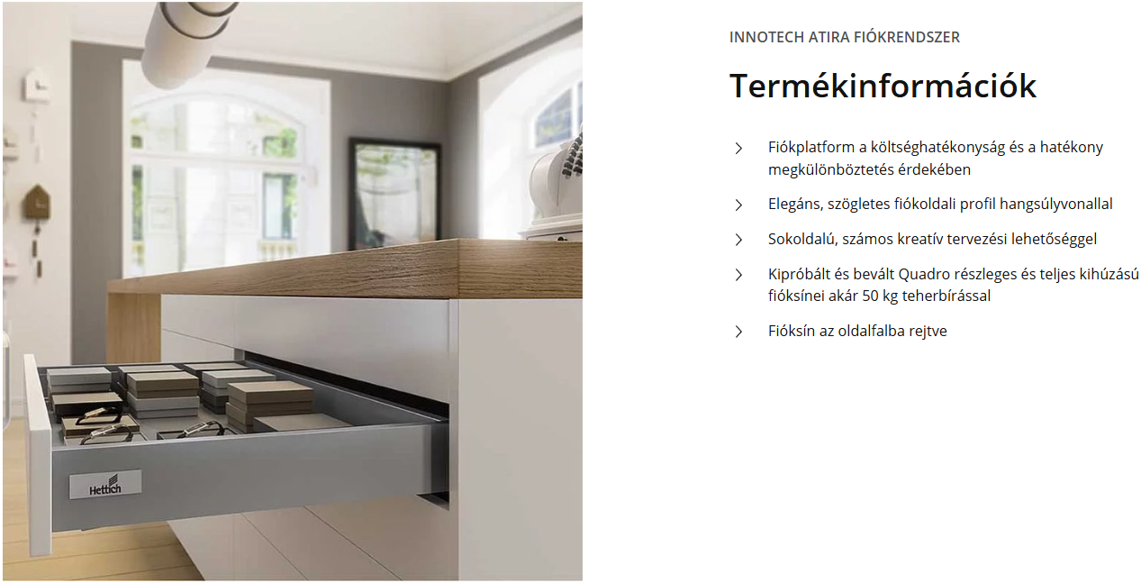 Hettich Innotech Atira duplafalú fiókrendszer 176mm magas edényfiók korláttal fehér