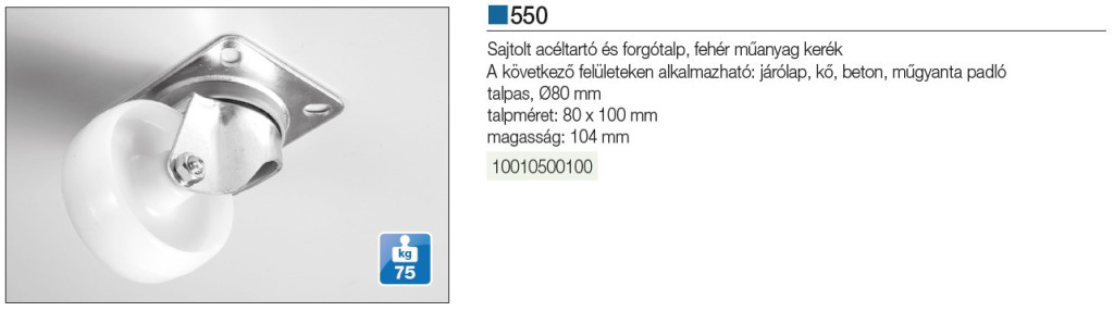 IPARI KERÉK 550.80 TALPAS IPARI KERÉK 80mm 75kg FEHÉR 10010500100
