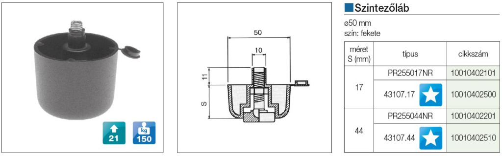 IRODABÚTOR KIEGÉSZÍTŐ PR2550 17 SZINTEZŐLÁB ÁTM 50x17 FEKETE 10010402101