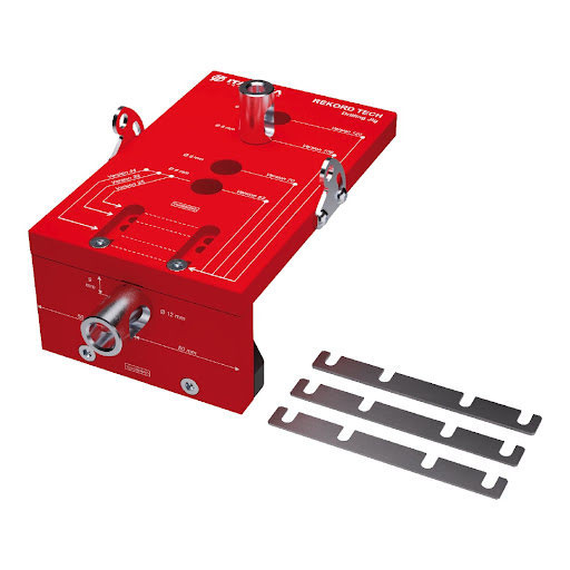 Italiana Ferramenta Rekord Drilling Jig for Panels 18-25mmThe Italiana Ferramenta Rekord Drilling Jig is designed for precision and convenience, allowing the assembly of cabinet units without industrial machinery. Its compact and lightweight construction makes it ideal for use both in workshops and on-site.Key Features:Supports panel thicknesses from 18 to 50 mm with bespoke spacers for drilling in the centreEnsures straight and precise drillings with bushing drilling guidesEquipped with lateral holes to clear wood shavings during operationsIntegrated locking knob provides strong, secure positioning for fast and safe drillingLateral brackets and printed guides simplify accurate alignmentPerfect for the entire range of Rekord Tech applications.