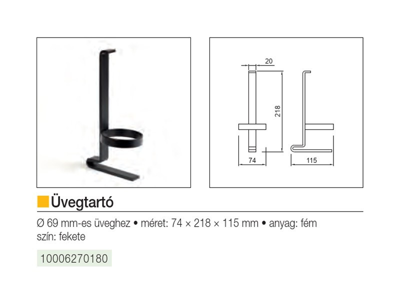 KÜLSŐ FÉMRÁCS "HORIZON" / "HORIZON BIG" ÜVEGTARTÓ 74x218x115MM FEKETE 10006270180