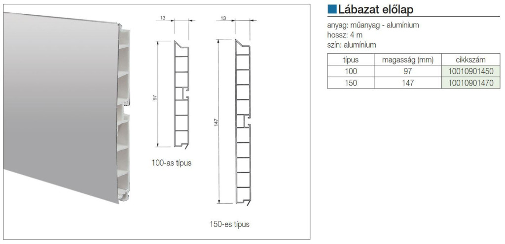 LÁBAZATELEM ELŐLAP H: 100 mm L: 4 fm ALUMÍNIUM 10010901450