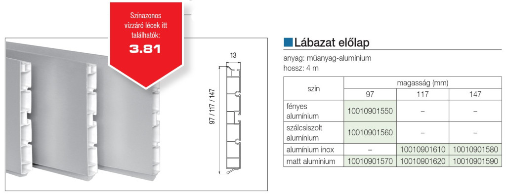 LÁBAZATELEM ELŐLAP H: 120 mm L: 4 fm ALUMÍNIUM INOX 10010901610