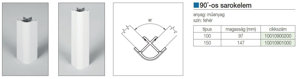 LÁBAZATELEM SAROK 90 FOKOS H: 100 mm FEHÉR 10010900200