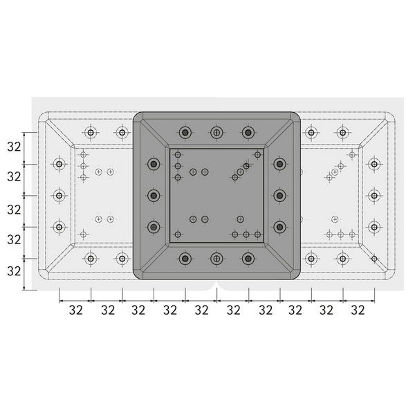 Rögzítés közvetlenül az asztallap alatt a 32 mm-es furatrácsban