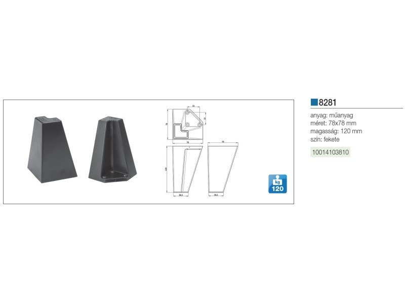 MŰANYAG DESIGN LÁB 8281 78x78mm H=120mm FEKETE 10014103810