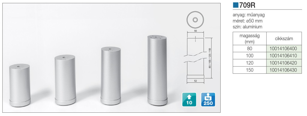 MŰANYAG DESIGN LÁB ART709/R H=150mm ALUMÍNIUM 10014106430
