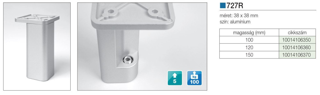 MŰANYAG DESIGN LÁB ART727/R H=100mm ALUMÍNIUM 10014106350