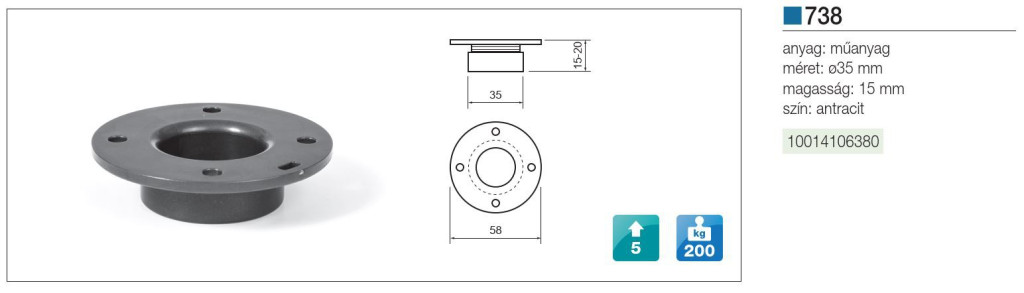 MŰANYAG DESIGN LÁB ART738/ST H=150/200mm ANTRACIT FEKETE 10014106380