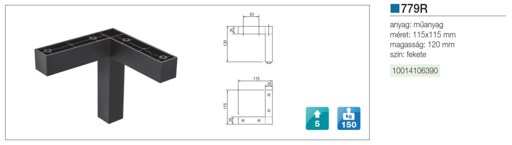 MŰANYAG DESIGN LÁB ART779/R H=120mm FEKETE 10014106390