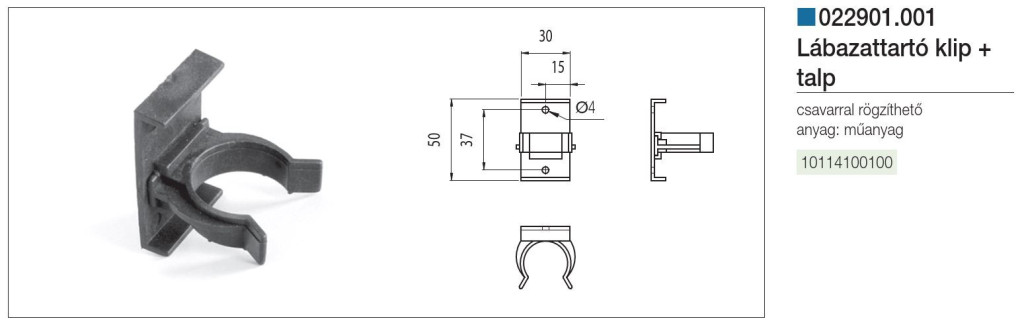 MŰANYAG SZEKRÉNYLÁB 22901.001 LÁBAZATRÖGZÍTŐ KLIP FEKETE 10114100100