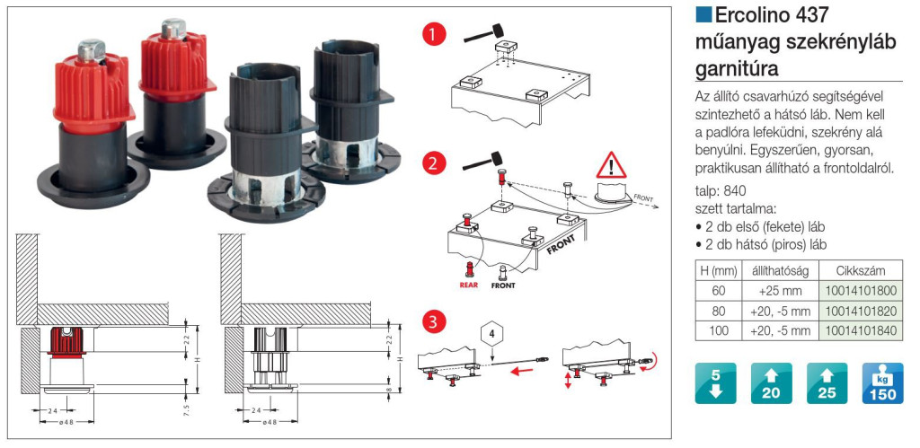 MŰANYAG SZEKRÉNYLÁB ERCOLINO 437/100 TALP NÉLKÜLI FEKETE 10014101840