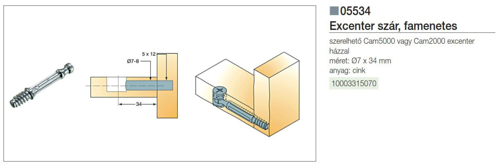 ÖSSZEHÚZÓ EXCENTERSZÁR GYORSSZERELŐS EUR 7x34mm FÉM 10003315070