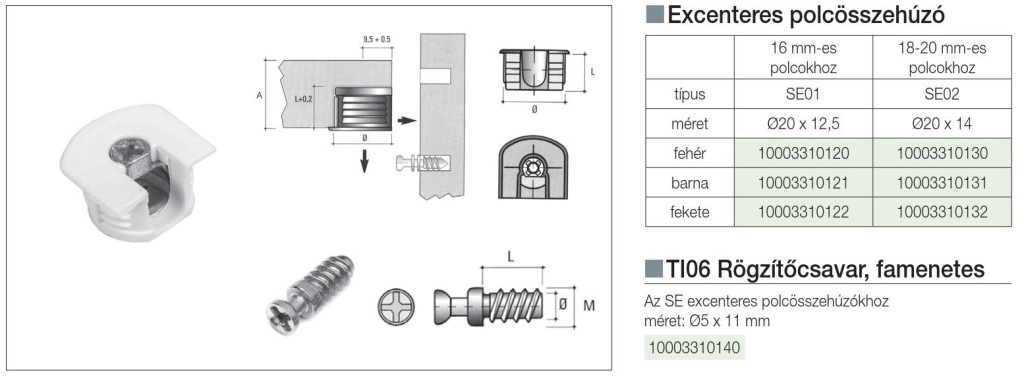 ÖSSZEHÚZÓ SE01 EXCENTERES POLCÖSSZEHÚZÓ 20mm FEKETE 10003310122