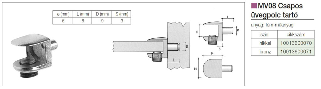 POLCTARTÓ MV08 ÜVEGPOLC TARTÓ 5x22mm BRONZ 10013600071