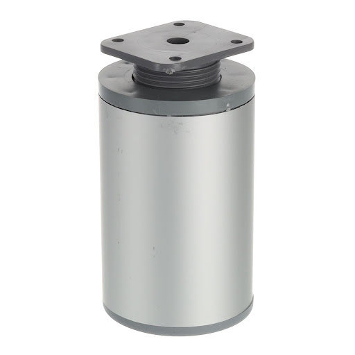 Alumínium bútorláb műanyag peremmel. A szekrény aljára 4 csavarral szerelhető. A láb magasságállítással rendelkezik, 15 mm-ig.