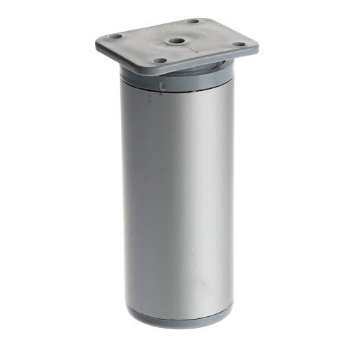 Alumínium bútorláb műanyag peremmel. A szekrény aljára 4 csavarral szerelhető. A láb magasságállítással rendelkezik, 15 mm-ig.