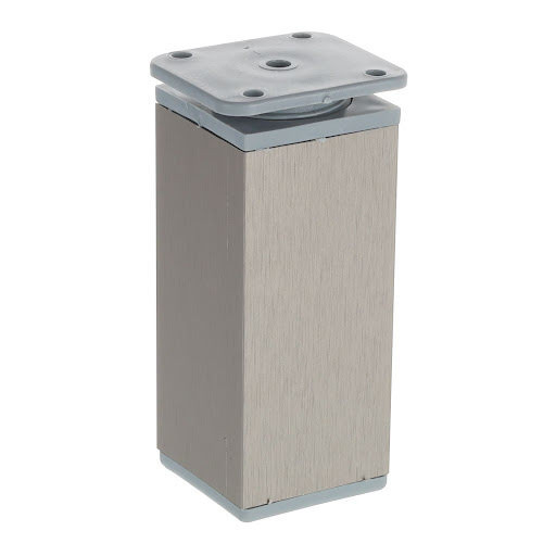 Alumínium bútorláb műanyag peremmel. A szekrény aljára 4 csavarral szerelhető. A láb magasságállítással rendelkezik, 15 mm-ig.