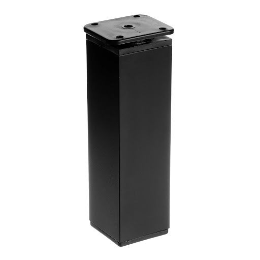 Alumínium bútorláb műanyag peremmel. A szekrény aljára 4 csavarral szerelhető. A láb magasságállítással rendelkezik, 15 mm-ig.