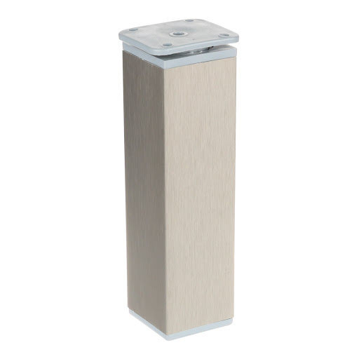 Alumínium bútorláb műanyag peremmel. A szekrény aljára 4 csavarral szerelhető. A láb magasságállítással rendelkezik, 15 mm-ig.