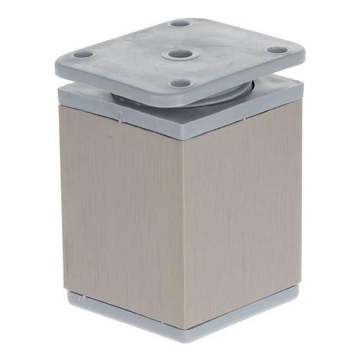 Alumínium bútorláb műanyag peremmel. A szekrény aljára 4 csavarral szerelhető. A láb magasságállítással rendelkezik, 15 mm-ig.