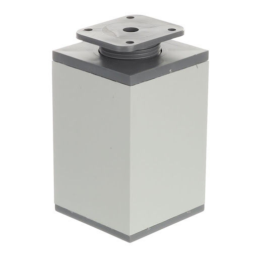 Alumínium bútorláb műanyag peremmel. A szekrény aljára 4 csavarral szerelhető. A láb magasságállítással rendelkezik, 15 mm-ig.