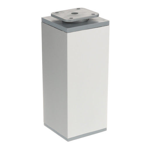 Alumínium bútorláb műanyag peremmel. A szekrény aljára 4 csavarral szerelhető. A láb magasságállítással rendelkezik, 15 mm-ig.