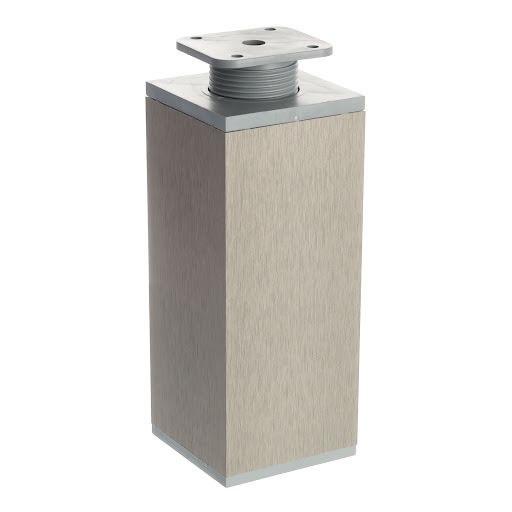 Alumínium bútorláb műanyag peremmel. A szekrény aljára 4 csavarral szerelhető. A láb magasságállítással rendelkezik, 15 mm-ig.