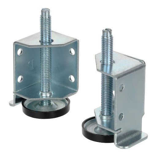 Fém állítható láb belső sarokba történő telepítéshez bútorokban (pl. kárpitozott bútorok) fa vázzal.
