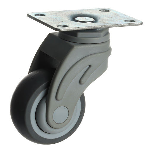Elforduló bútorkerék puha futófelülettel, fém tengellyel. A szerelőtalp mérete 95x66 mm. A futófelület szürke.