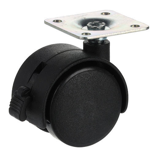 Bútorgörgő szekrényekhez szerelőtalppal, puha felületekre (puha futófelület nélkül). Fékkel az elmozdulás megakadályozására.