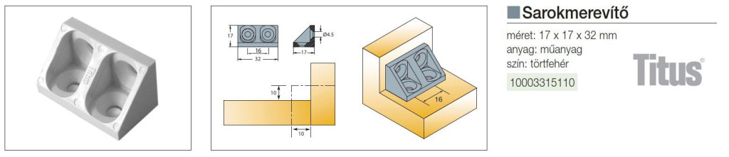 SAROKMEREVÍTŐ SAROKMEREVITŐ FEHÉR 10x10x30mm FEHÉR 10003315110