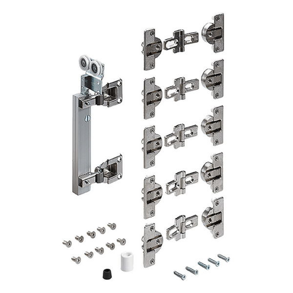 A készlet tartalmazza az 1 db 2 ajtószárnnyal ellátott, jobb oldali tolóajtóhoz szükséges összes alkatrészt
