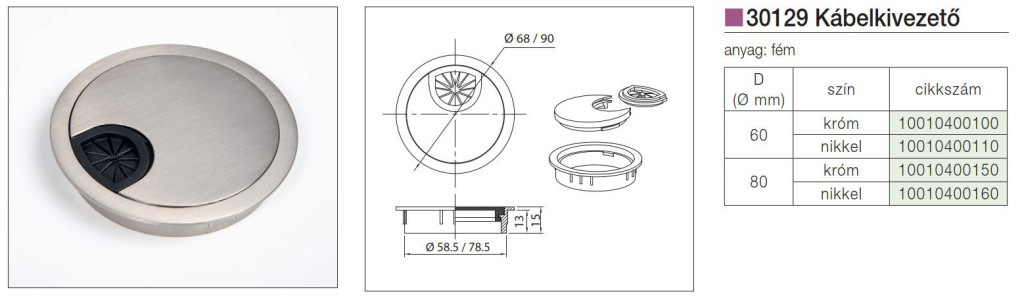 IRODABÚTOR KIEGÉSZÍTŐ 30129 KÁBELKIVEZETŐ ÁTM: 80mm KRÓM 10010400150