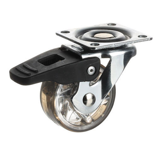 Riex GC70 bútorgörgő D50, talp 50x50 mm, puha futófelülettel, fékezhető, átlátszó barna