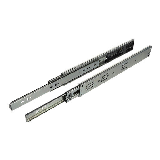 Teljes kihúzású golyóscsapágyas sín fa fiókhoz történő szereléshez. A belső fiók sín eltávolítható a fiók egyszerűbb telepítéséhez. A sín puha záródási mechanizmussal rendelkezik.