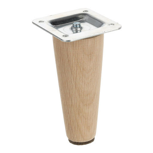 Függőleges fa bútorláb, egyenes, kúpos, fém karimával, amely a bútor aljára csavarozható. A láb nincs lakkozva, lehetővé téve a festést bármilyen kívánt színnel, vagy olajjal, viasszal, lakkal kezelhető.